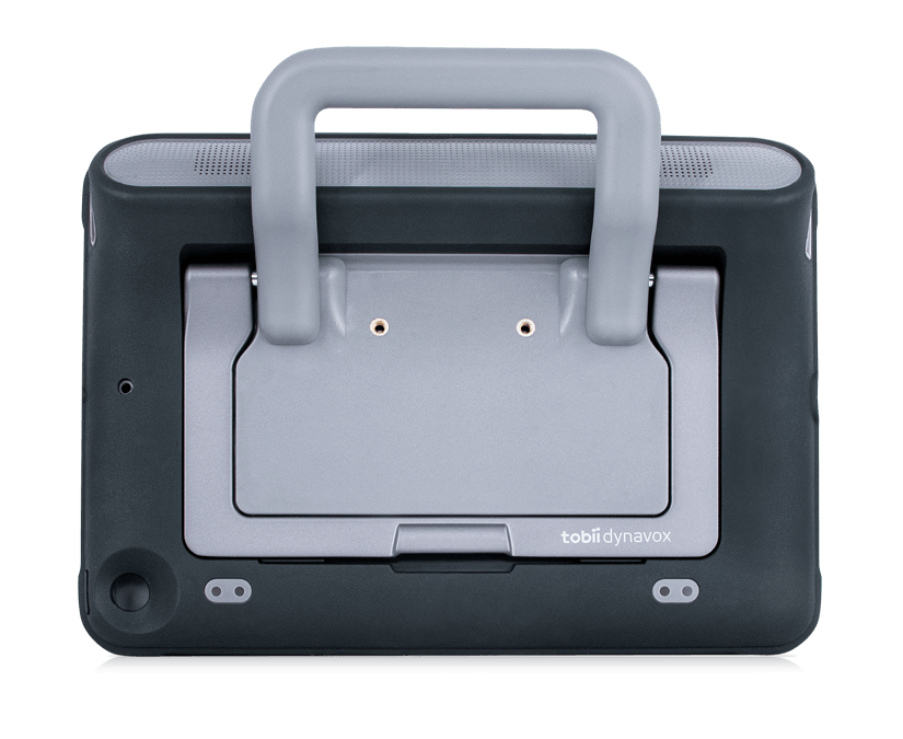 SC Tablet is a compact yet durable iPad-based speech generating device for people of all ages with communication impairments. Pre-loaded with AAC apps, this rugged device has a fitted silicone case to withstand drops, complete with reinforced corners, a screen-protecting frame, and built-in handle and stand. It’s available in two sizes: SC Tablet and SC Tablet Mini.