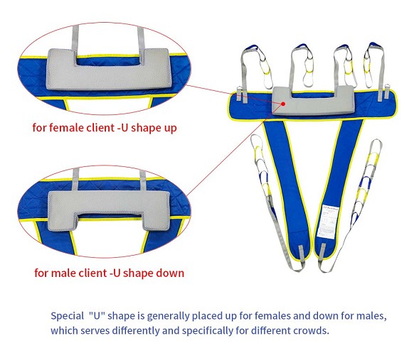 *When the patient is physically well after a health assessment, the sling is suitable for gait movement. *This sling provides stable support and full mobility of the upper torso, enabling individuals to exercise in a rehabilitation setting and environment. *Adapts to an individual's various upright postures with multiple loops on six shoulder straps. *Color-coded loop strap for height posture adjustment.There is a cushion in front to let disperse the pressure point in the chest during gait movements. *Please ask for male and female use, available upon request.