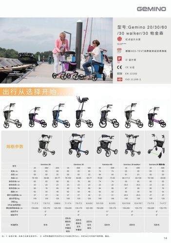 Gemino 助步车设计独特、功能全面、操作灵活、时尚靓丽、是老年人出行的贴身伴侣。