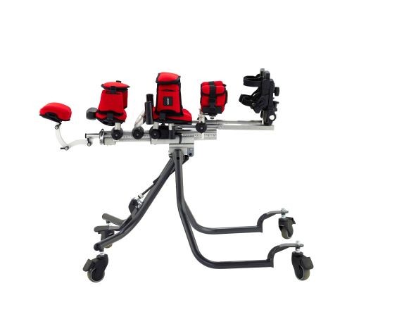 多功能款三合一站立架(直立、仰卧、俯卧),适合1~5岁特殊儿童。三种不同的姿势下,具备高度可调整性,且下肢髋关节外展角度可达60度。独立式可调整胸骨固定带,在俯卧姿势时提供支撑保护,让双手能自由活动或进行康复训练。