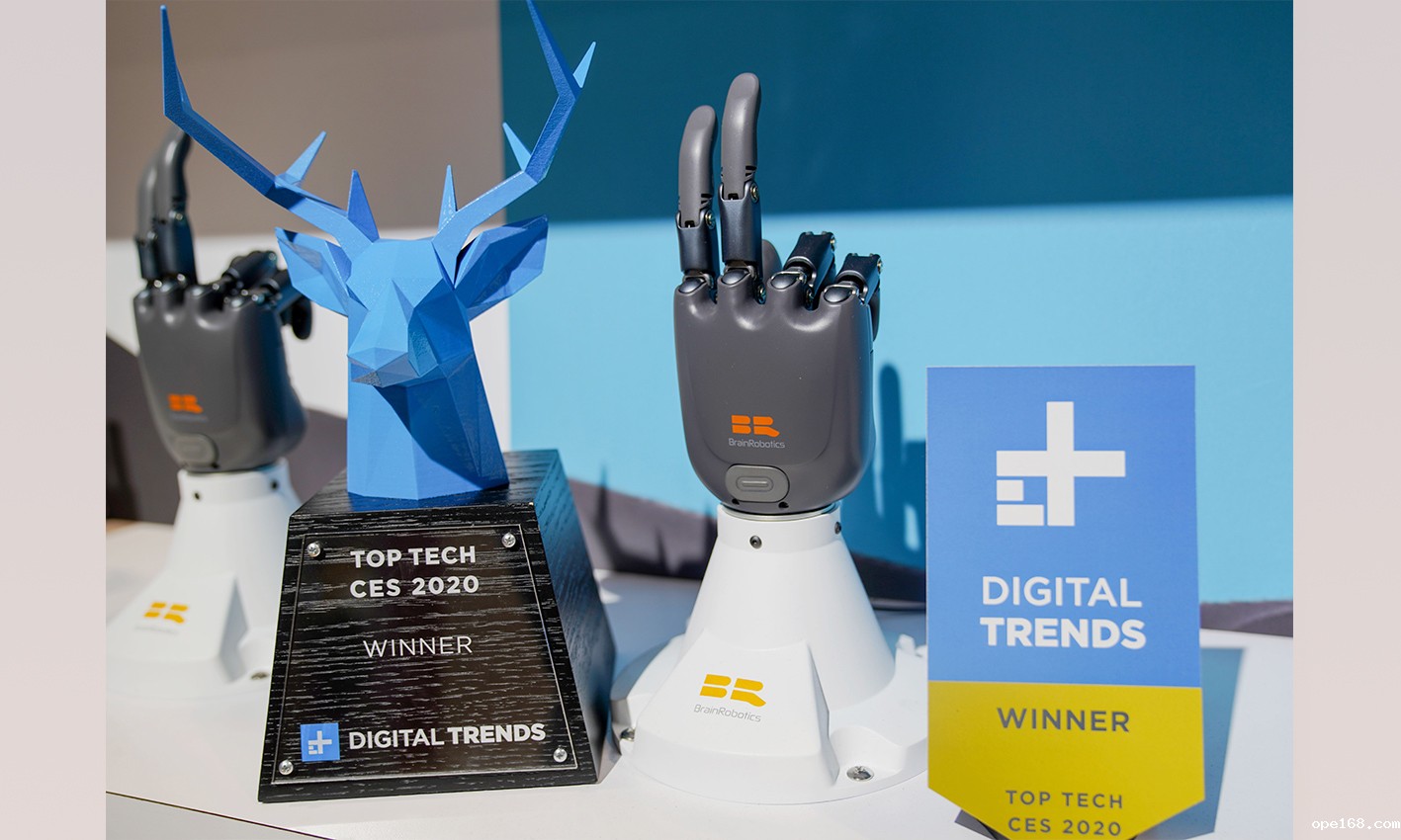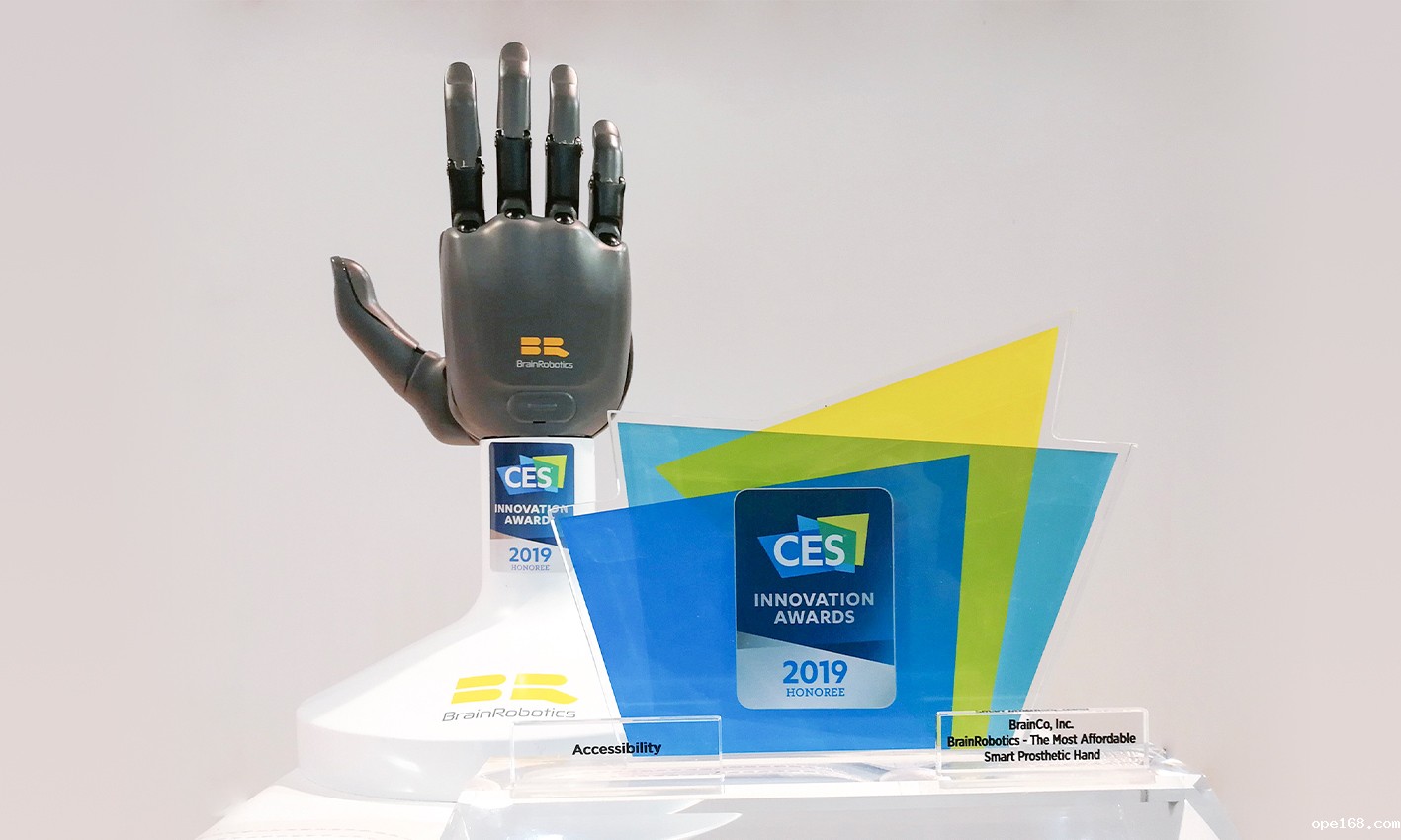 BrainRobotics智能仿生手,是一款脑机接口技术与人工智能算法高度整合的智能产品。这款仿生手可通过检测佩戴者的神经电和肌肉电信号,识别佩戴者的运动意图,并将运动意图转化为智能仿生手的动作,从而做到灵巧智能,手随心动。