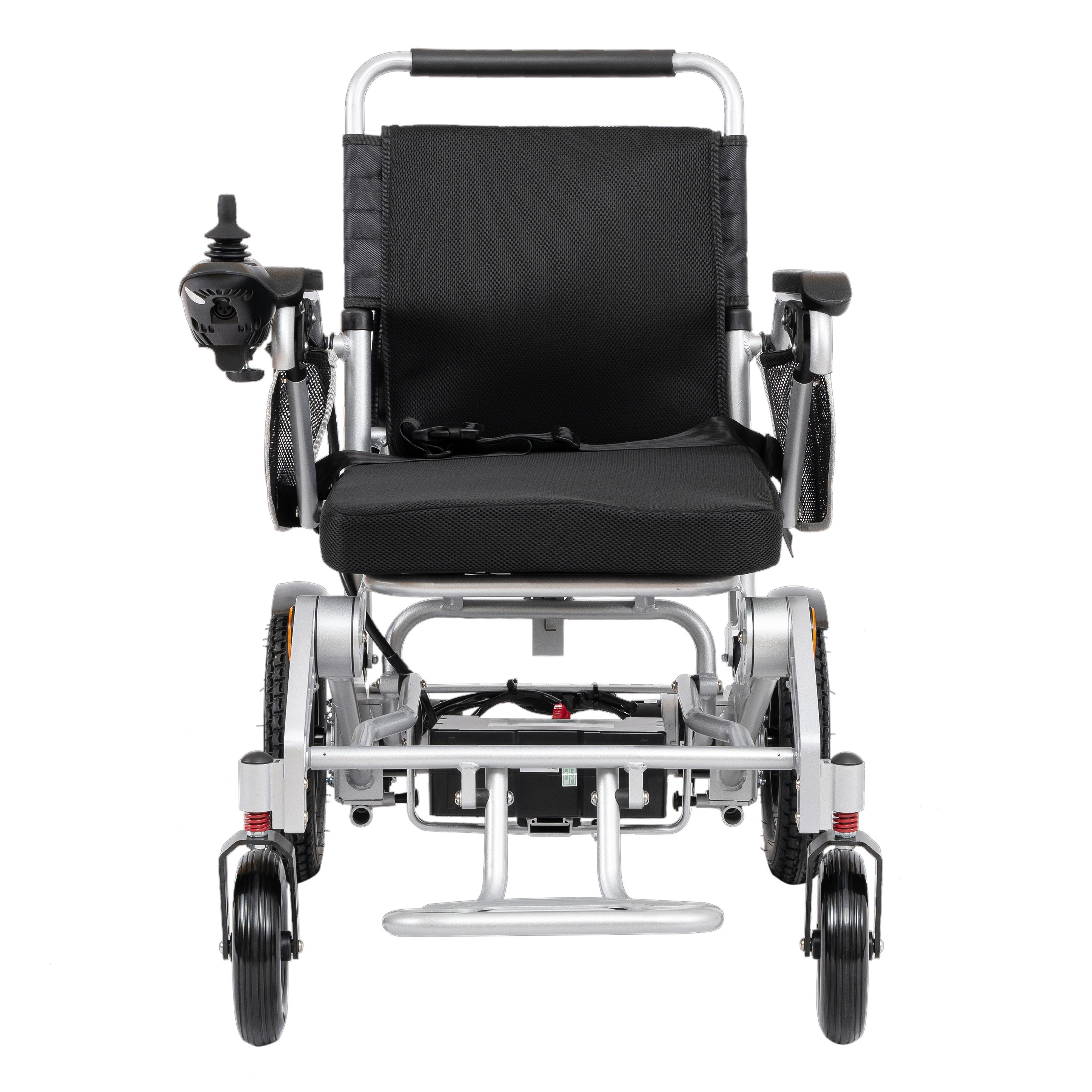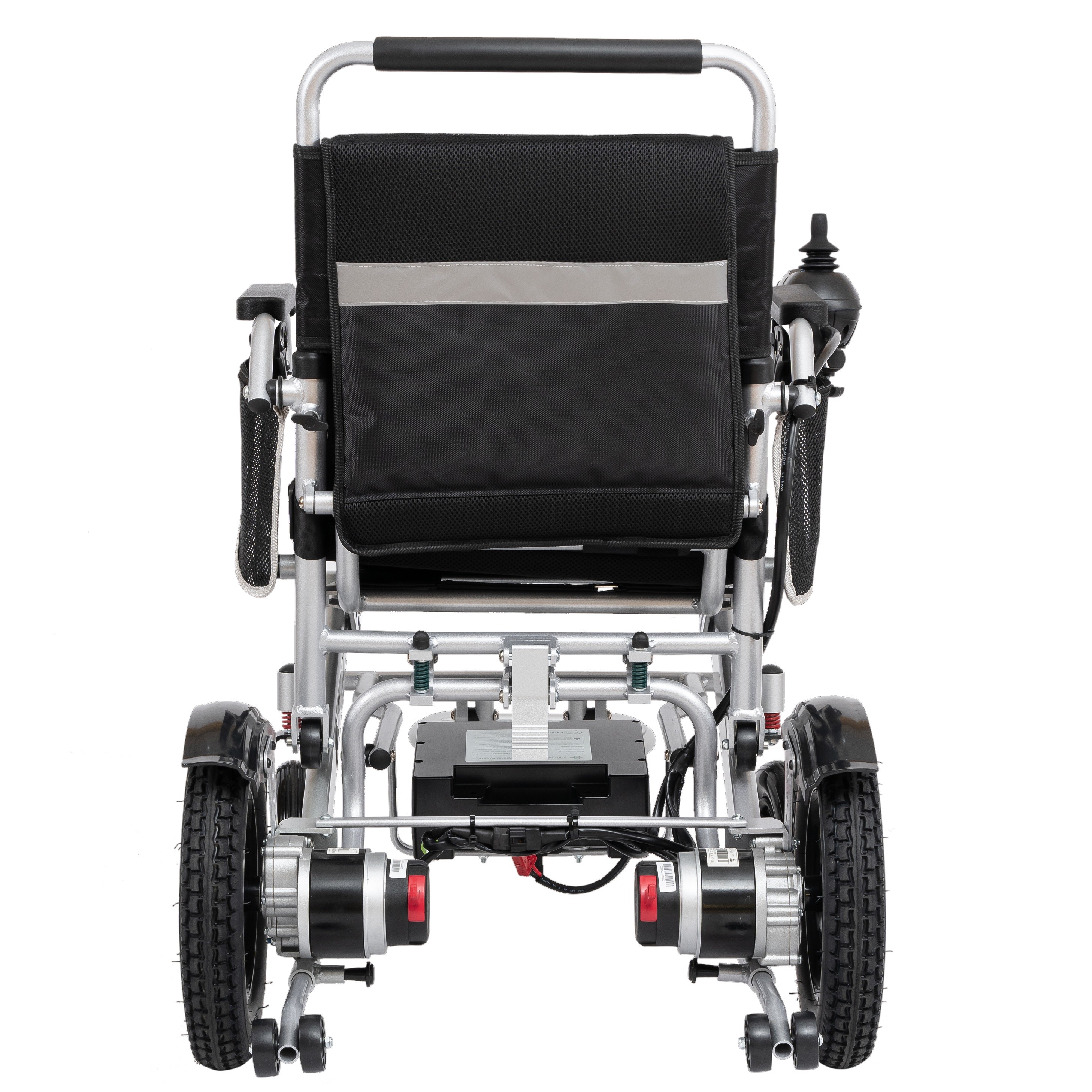 1. 两侧扶手可掀,方便两侧下车,(靠近床边,侧方移动人身更方便) 2. 电磁刹车控制系统,松手可自动刹车,上下坡断电不溜车,安全系数更高,可电机上切换手推电动两用 3. 午阳品牌控制器,控制器速度五档可调,配置喇叭,电量显示清晰,红灯闪烁充电提醒,可左右切换操作 4. 优耐特品牌电机,双电机2*250瓦,大功率,动力强劲充足 5. 整车铝合金车架,可一键折叠,轻便便携,方便放置后备箱,外出携带使