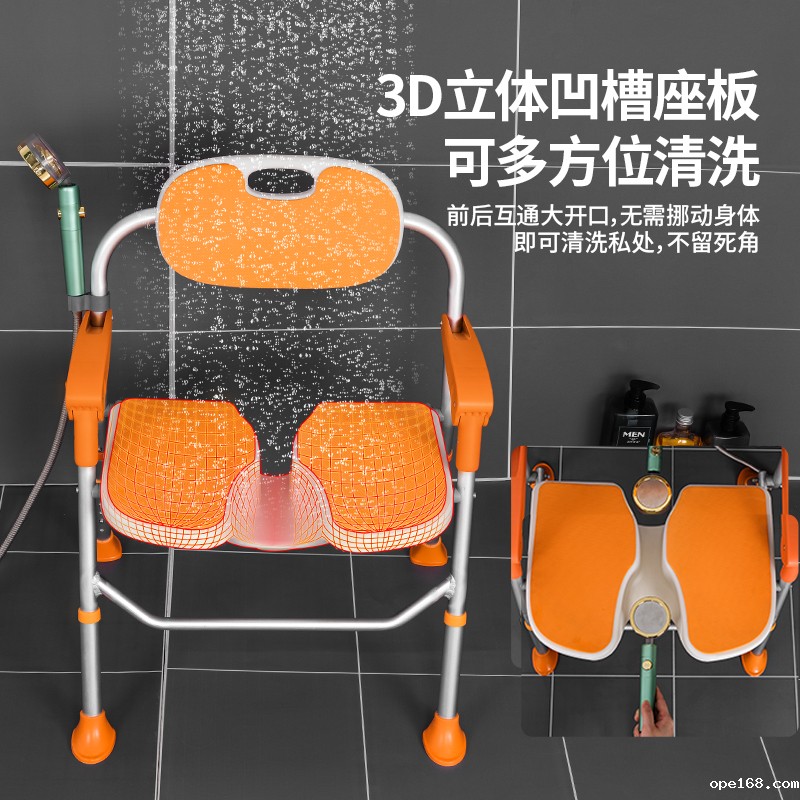 一键折叠洗澡椅,3D凹槽设计,方便清洗下身,铝合金主架防水防锈