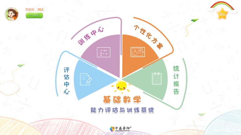 ① 理论基础: 基础数学能力训练仪是专门用于评估与训练童的数学能力的软件系统。本系统根据儿童数学能力发展的最新认知科学研究成果,对儿童的基础数学能力、工作记忆、执行功能、元认知策略进行多维度评估和科学训练。 ② 核心功能: 系统配有早期数学能力评估量表(TEMA-3)标准化评估工具,可以有效评估3-8岁儿童的数学能力,并能够预测儿童在小学阶段可能出现的数学学习困难。本系统内置丰富有趣的训练游戏