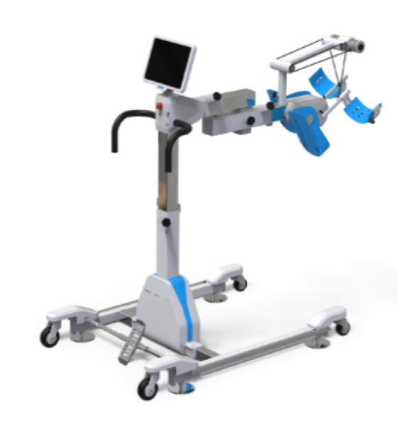 上下肢主被动训练系统-床边款针对卧床患者设计,机器人高度、踏板位置,吊臂方向均可调节,适配各种类型的床。通过正确的运动模式刺激肌肉运动,刺激神经组织,改善血液循环,预防下肢深静脉血栓,避免肌肉萎缩等并发症,达到促进上下肢运动功能恢复的目的。 ·支持沉浸式训练交互软件,通过视觉反馈强化康复训练效果,提升患者康复的积极性、主动性。 ·由上肢和下肢训练系统两部分组成,可实现卧床病人上肢及下肢的独立训练