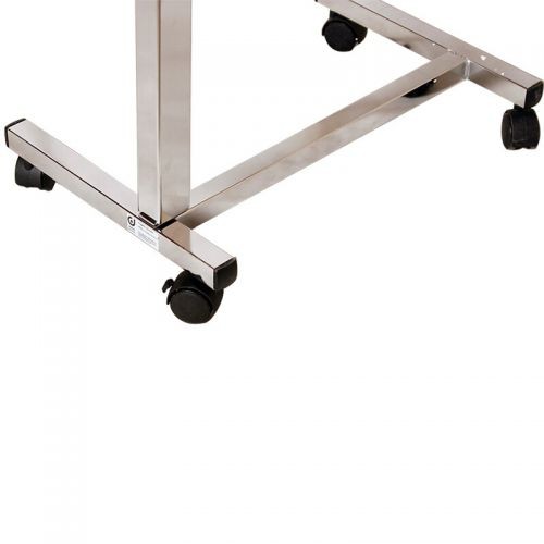 产品特色:1、木质餐桌板,结实耐用。2、桌板高度液压调节高度,根据需求进行调节。3、四个万向轮,移动更方便,外侧两脚轮带刹车功能。4、主架构为不锈钢材质,稳重且坚固。尺寸信息:桌面71.5*38.5*2cm桌腿宽:5cm 高度:77~110cm