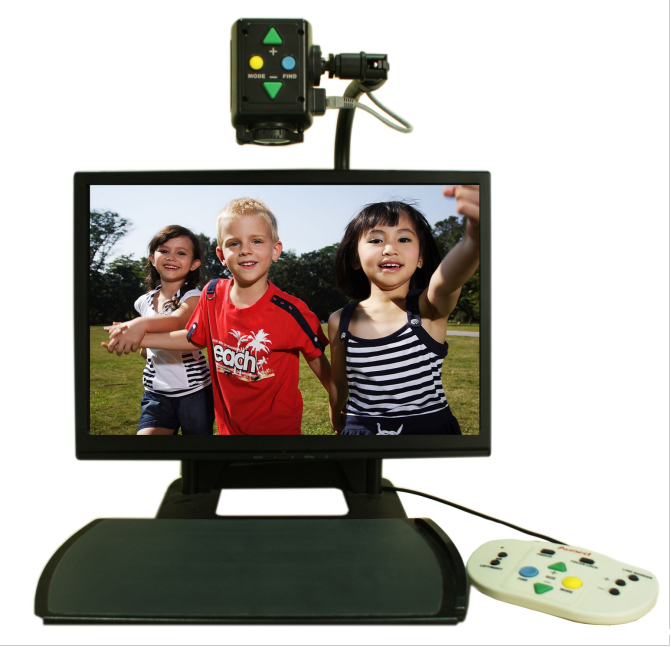 该类电子助视器配备高清摄像头、大尺寸阅读台及显示屏,放大倍数高,显示内容更全、更清晰。其重量往往较重,体积较大,类似古老的电脑,因此比较适合固定在某个场所下使用。