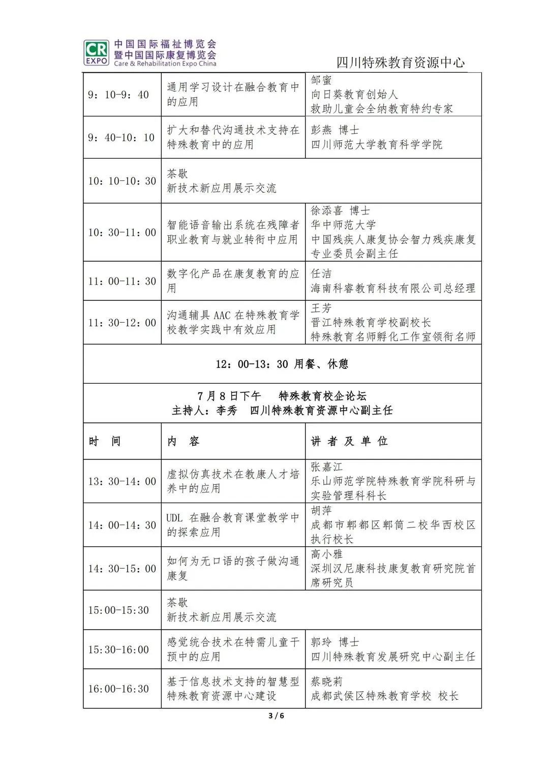 7月8日下午 特殊教育校企论坛 主持人:李秀 四川特殊教育资源中心副主任 |