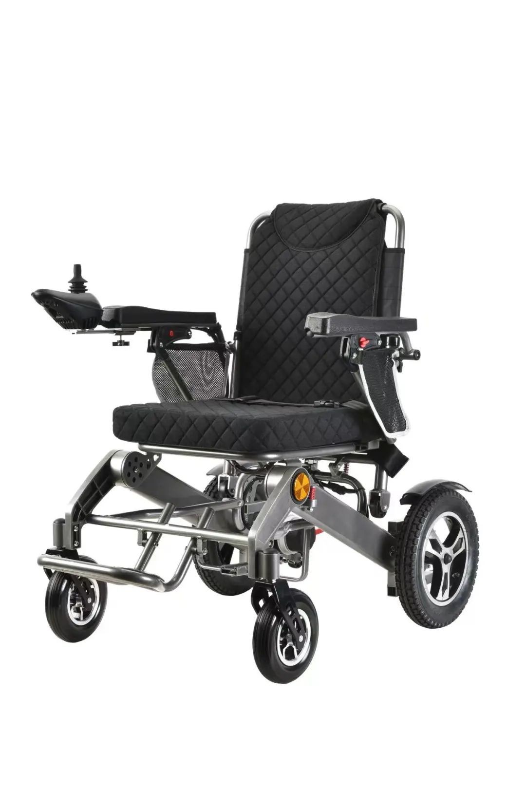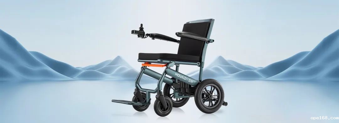 超轻便电动轮椅,轻松折叠,靠背可后躺,重约19.8kg,折叠后可轻松放入后备箱;可上飞机无忧出行。