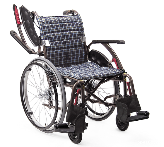 乘坐舒适的曲线车架轮椅,三条曲线车架贴合身体曲线,乘坐舒适,长时间乘坐也不易疲劳。活动扶手和活动脚,方便移乘。