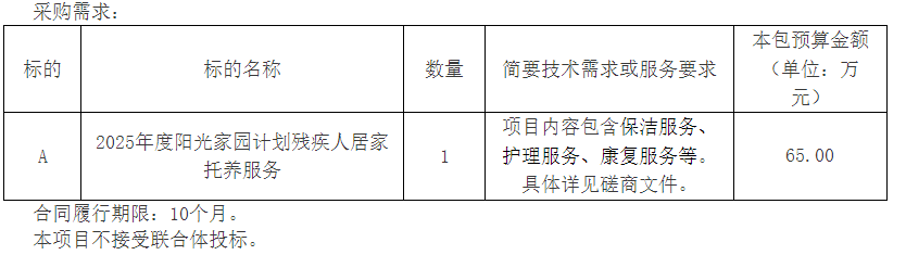 2025年度阳光花园计划残疾人居家托养服务竞争性磋商公告