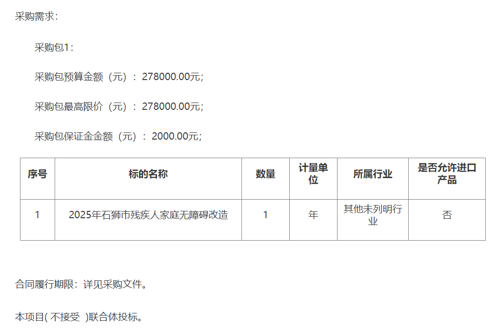 石狮市残疾人联合会2025年石狮市残疾人家庭无障碍改造竞争性磋商采购公告