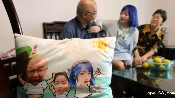 ▲翁忻怡爱家人,枕头印有她和家人的卡通形象。