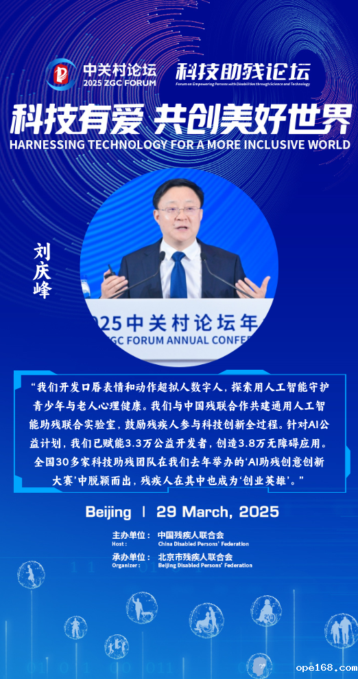 本次论坛是中关村论坛今年首设的残疾人领域平行论坛,主题为“科技有爱,共创美好世界”,来自产学研各界的中外科学家围绕人工智能、脑机接口、外骨骼机器人等前沿技术创新,共同探讨通过助残科技创新与产业发展,助力残疾人享有更加幸福美好的生活。一起来听大咖怎么说↓↓↓