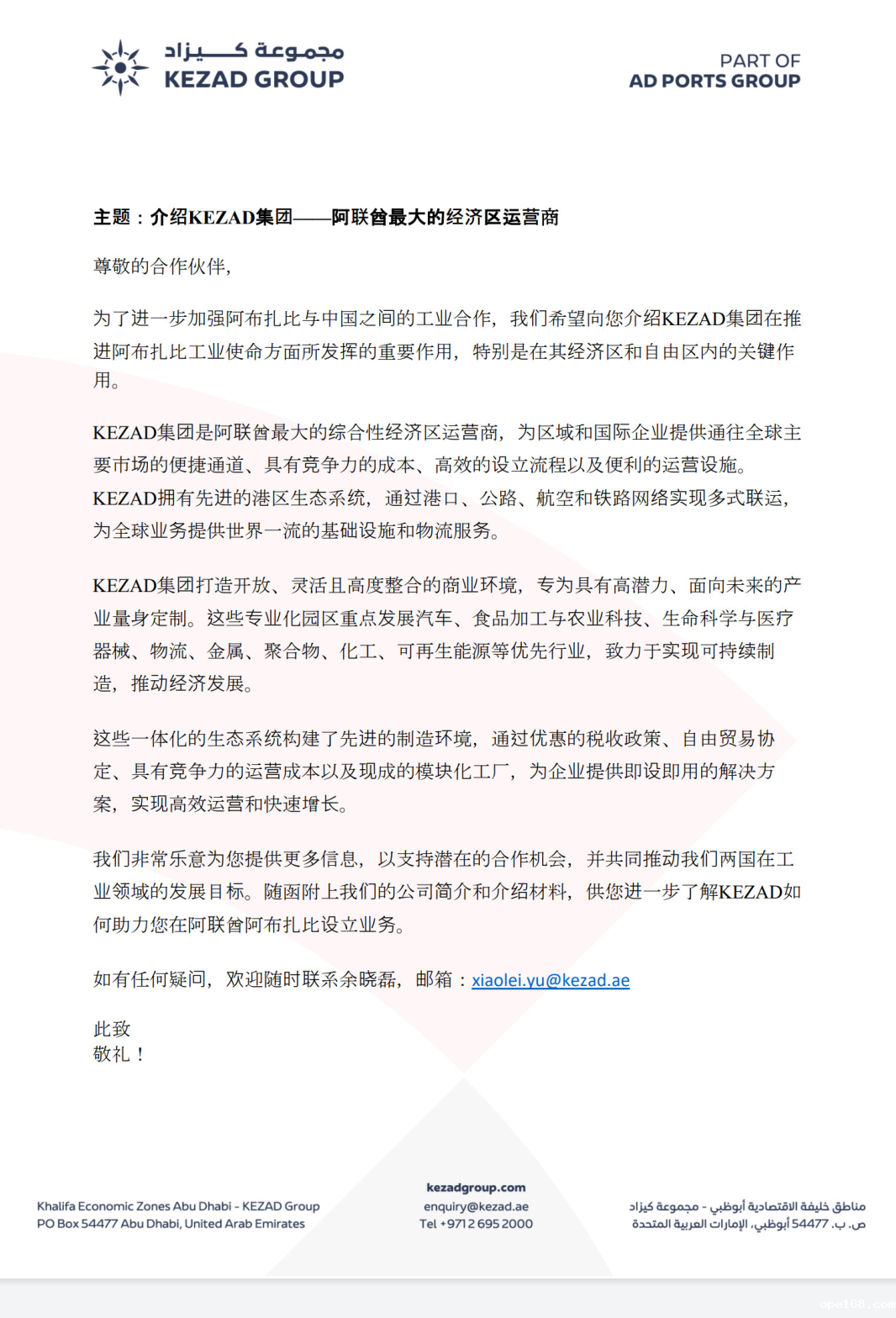 KEZAD集团是阿联酋最大的综合性经济区运营商,为区域和国际企业提供通往全球主要市场的便捷通道、具有竞争力的成本、高效的设立流程以及便利的运营设施。